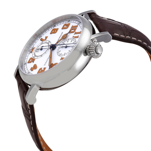 Однокнопочный хронограф с колонным колесом. Белый лакированный циферблат с глянцевой отделкой дополняется контрастными воронеными стрелками в форме собора, которые обеспечивают чёткое считывание времени и отрезков времени, измеряемых секундомером. Сапфировое стекло имеет многослойное внутреннее антибликовое покрытие.