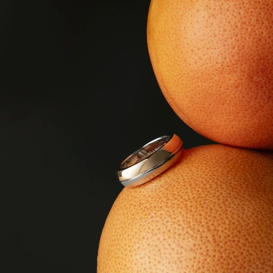 Одна половина кольца выполнена в классическом серебристом цвете, воплощая элегантность и сдержанность. Вторая половина с IP-покрытием цвета розового золота, добавляя тепла, изысканности и современности. Этот контраст цветов создает гармоничное и привлекательное сочетание.
